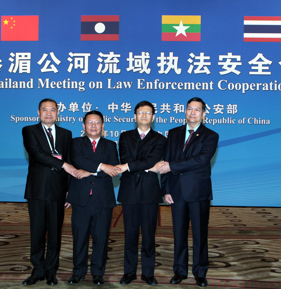 中國國務委員、公安部部長孟建柱主持會議。老撾副總理兼國防部部長當齋,緬甸內政部部長哥哥,泰國副總理哥威率團出席會議。聲明說,與會各方認為,四國執法部門一貫相互尊重和理解,在反恐、打擊毒品犯罪、防範和打擊非法出入境、打擊販賣武器彈藥和拐賣婦女兒童等跨國犯罪活動中密切協作,維護了本地區的安全穩定,鞏固和發展了四國人民之間的傳統友誼。
