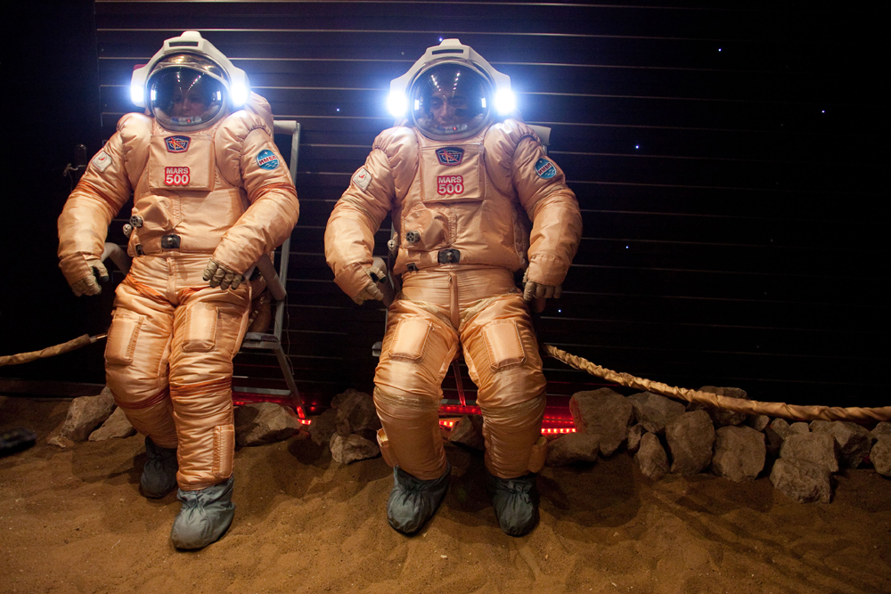 圖:志願者身穿太空衣模擬登陸火星\美聯社