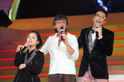 圖:林子祥(中)壓軸,與阿旦(右)及珊珊合唱《三人行》
