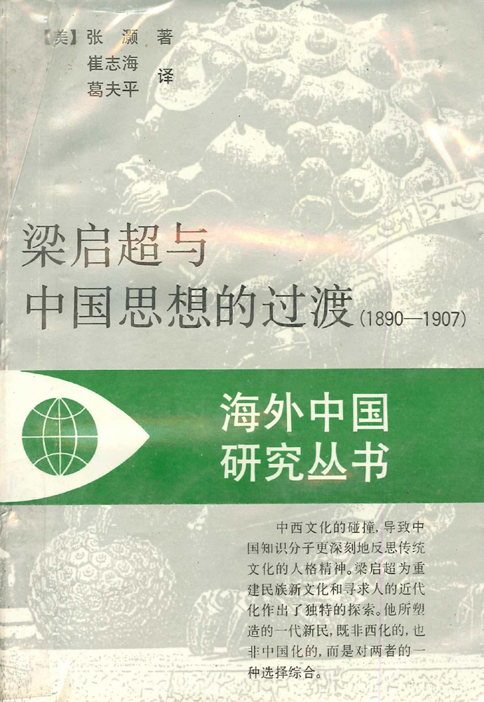 梁啟超是中國近代歷史上的著名學者,是我最崇拜的歷史人物。他活躍於巨變的晚清時代,不但致力推動政治改革,亦從不同方面尋找令中國富強之道。張灝著(崔志海等譯)的《梁啟超與中國思想的過渡Liang Chi-chao and Intellectual Transition in China (1890-1907)》(南京:江蘇人民出版社,1993年)(圖),是一部從大時代角度分析梁啟超貢獻的作品。在芸芸眾多研究梁啟超的書籍中,本書是其中一部代表作,深入探討了梁啟超個人與晚清局勢的互動關係。書中有一章節分析了梁啟超思想中有關公德和私德主張的起源,及評論了這些主張的特色。