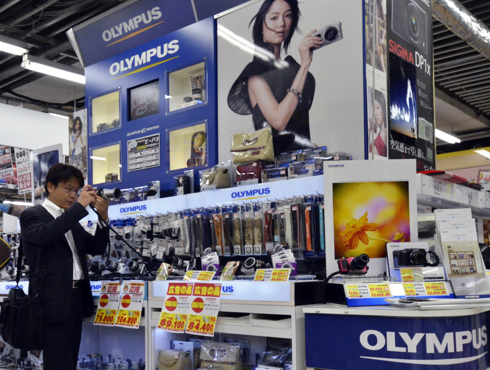 圖:日本相機製造商奧林巴斯出現會計醜聞,拖累公司股價昨日狂瀉20%