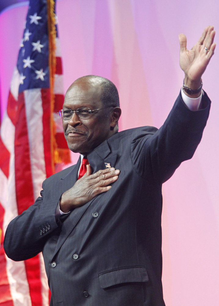 圖:美國共和黨總統候選人赫爾曼·凱恩否認比亞雷克的性侵指控\美聯社