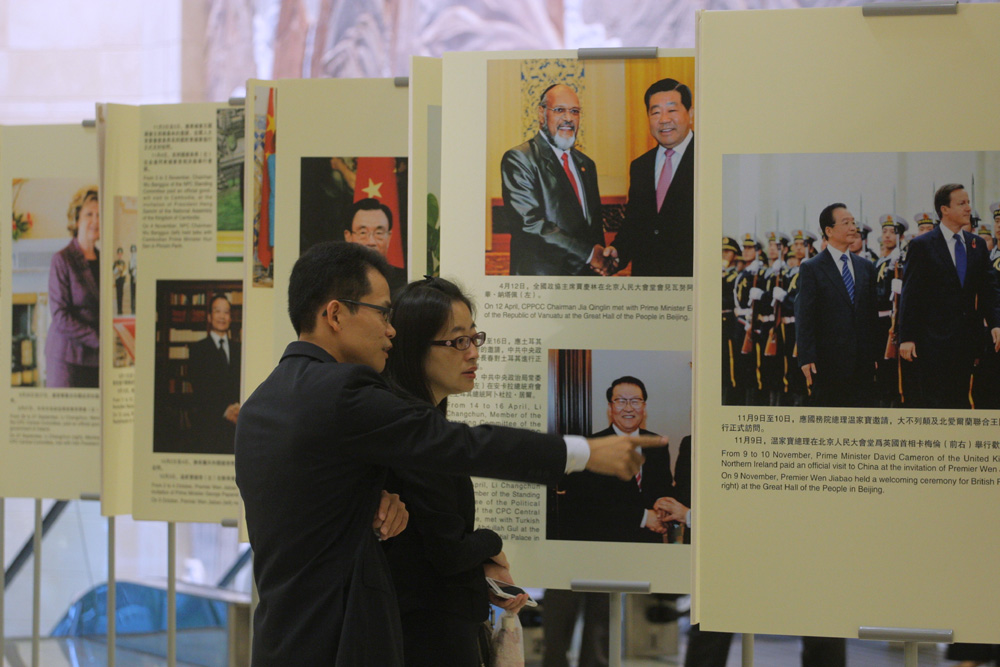 昨天上午的公署二樓大廳,熱鬧非凡,聚集各國駐港領事館代表,以及本港多間高校的學生和團體。適逢開放日,公署特地在大廳擺設多幅有關「中國外交二○一○」的圖片展板,以去年我國重大外交事件為主線,別開生面的從不同角度直觀再現了豐富多彩的外交場景,其中不少是國家領導人在積極展開高層交往、出席多個世界級重要會議或場合的圖片,如國家主席胡錦濤於去年四月十二日出席華盛頓核安全峰會時與美國總統奧巴馬會面的照片等。圖片展吸引不少學生和外國領事代表駐足欣賞,公署還安排工作人員耐心向大家講解公署的日常工作和設施,貼心而專業。