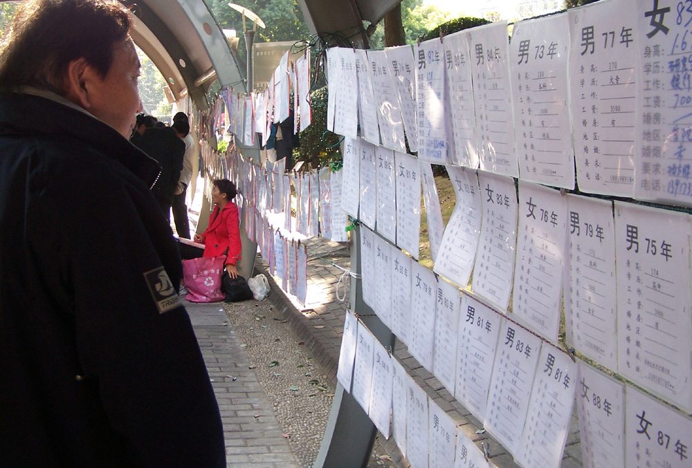 在「70後」、「80後」茫茫信息中,一份寫着:「女,89年10月生,1.73米,現國企工作,尋男……」的相親簡介引起了記者的關注。「為何這麼小年紀就來相親?」望着一臉茫然的記者,對方回答,「先找起來呀,不然再過幾年肯定來不及。」這名為女兒尋愛的母親說,女兒22歲了,但至今從未談過戀愛,「我前後共來過三次,女兒也與幾位男士見了面,可惜雙方沒感覺,所以只能再來碰碰運氣」。
