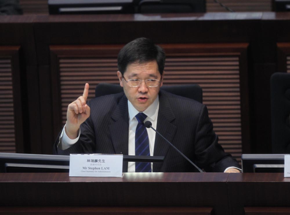 圖:林瑞麟昨首次以司長身份出席立法會內會特別會議\本報攝