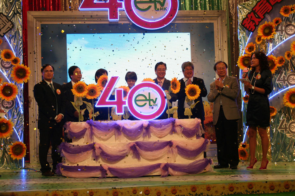 圖:9月19日,教育局總課程發展主任葉登平(左一)、教育局副秘書長陳嘉琪(左三),前教育署署長余黎青萍(左四)、助理廣播處長(電視及機構業務)張文新(右四)等出席教育電視40周年慶祝儀式