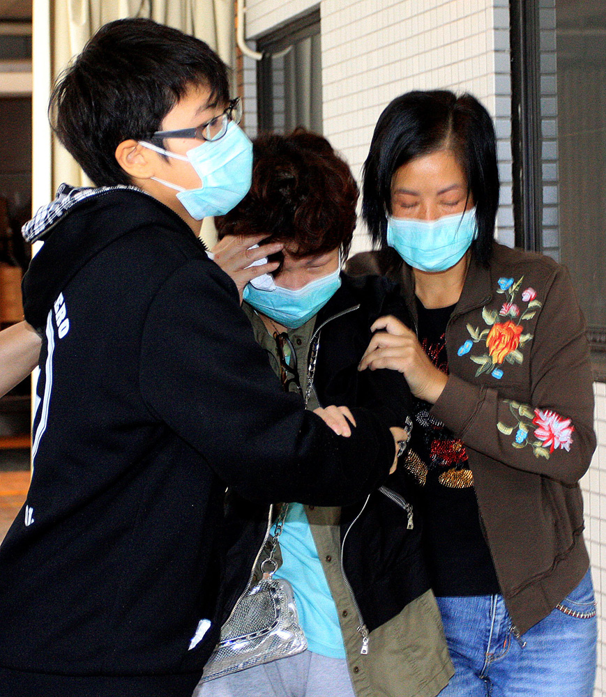 圖:吳母情緒激動,需由家人攙扶離開醫院