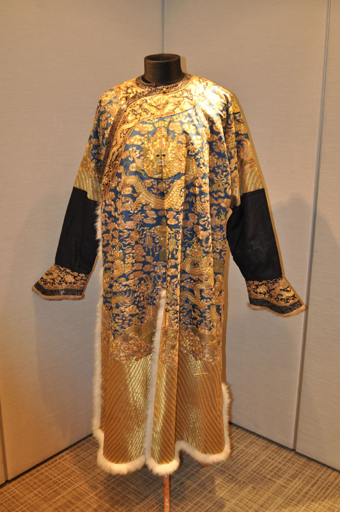 圖:十九世紀石青緞繡八寶金龍裘皮袞服,估價在五十至七十萬元間 本報攝