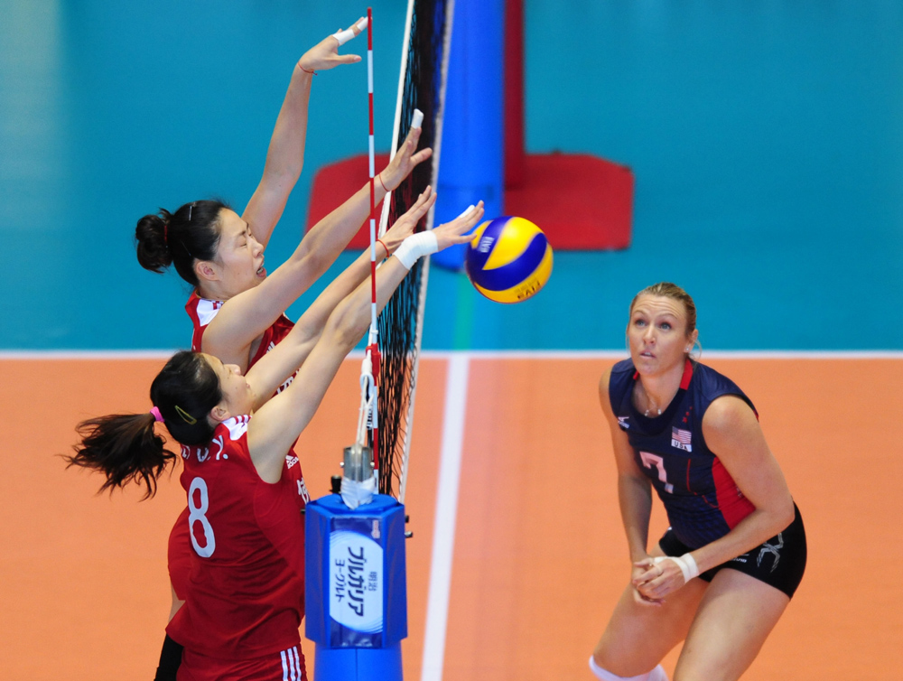 第一局比賽,開局雙方戰成3:3,美國隊胡克爾二號位強攻得手後,美國女排將比分反超為5:4。之後,中國女排6:8落後對手進入第一次技術暫停。暫停歸來的美國隊仍然一路領先,並展現了強大的網上實力。雖然中國隊一度連追五分將比分迫至20:22,但仍以21:25輸掉首局。第二局,中國女排四度領先局點但卻未能拿下比賽,最終以29:31被美國隊反超遺憾輸掉第二局。第三局,在前兩局落後的情況下,中國隊並沒有受到影響,在第三局中發揮比較穩定,最終以25:18扳回一局。第四局,美國隊以8:4領先進入第一次技術暫停。但後來,中國隊在王一梅發球和強攻連下3分後,以16:13反超對手進入第二次技術暫停,並保持了領先優勢。惠若琪最後四號位扣球命中,將比分鎖定25:19。