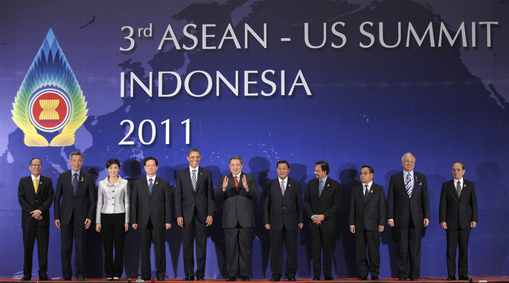 圖:美國「重返亞洲」戰略令東亞峰會增添變數。圖為與會國家領袖在峰會上大合照