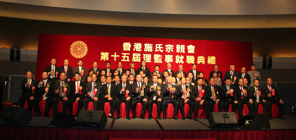 圖:香港施氏宗親會第15屆理監事就職,主席台上賓主合影 本報記者黃閩攝