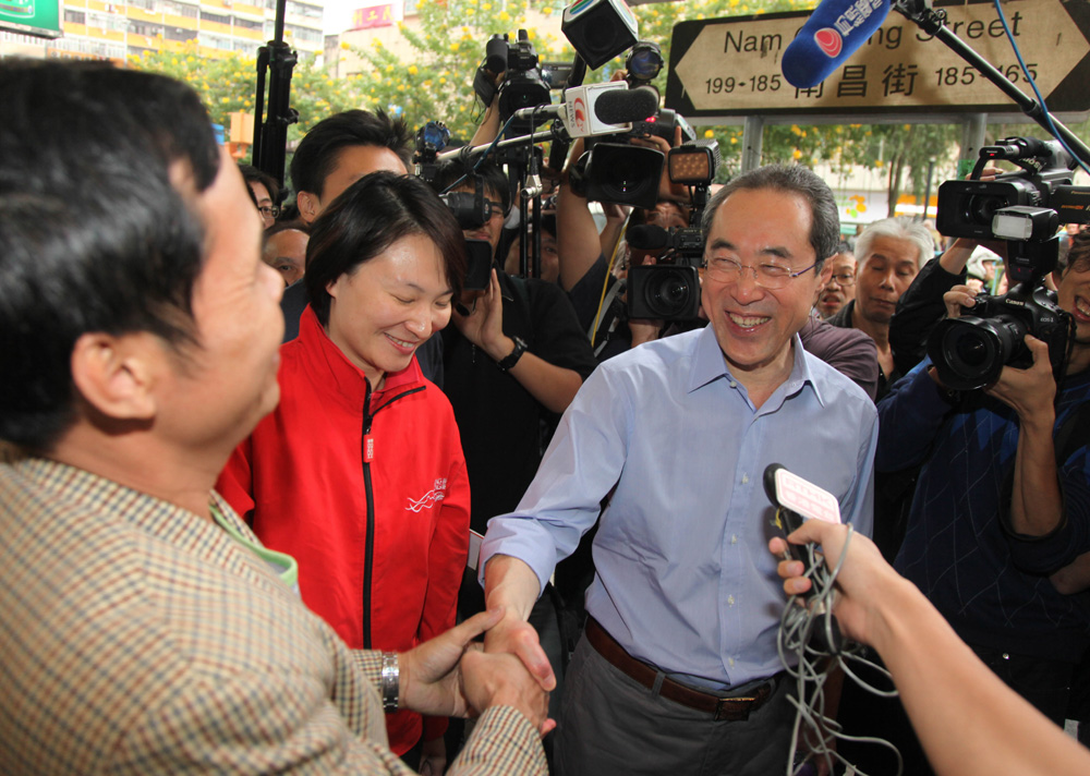 圖:唐英年昨訪深水埗獲居民歡迎\本報記者蔡文豪攝