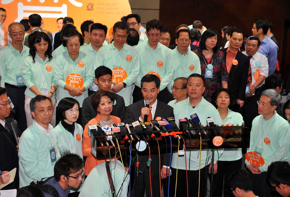 圖:梁振英競選團隊日前在參選造勢大會合影 /資料圖片