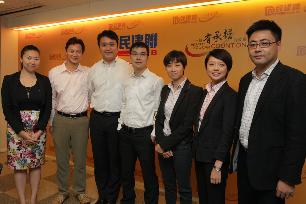 圖:民建聯區議員,左起:林琳、張國慧、李世榮、張琪騰、朱麗玲、蕭嘉怡、葉傲冬\本報記者林雨燊攝