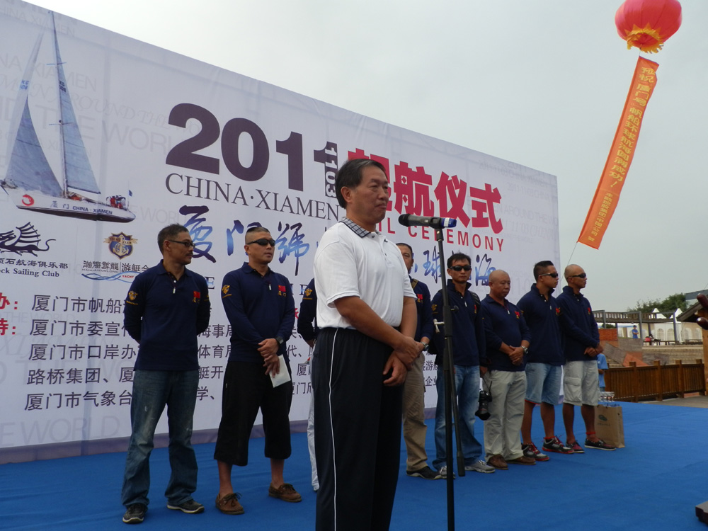 在當天的啟航儀式上,廈門市副市長潘世建為勇士們戴上護身符,著名歌手郭峰現場演唱《遠航》,這首《遠航》是專門為「廈門號」帆船環球航海之旅創作的。完成單人帆船航海的翟墨、全國帆船運動愛好者吳亮等航海界人士及許多市民都到場前來送行。
