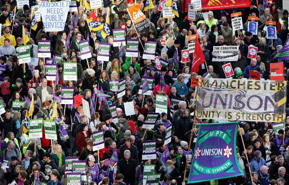 另一方面,發起罷工的英國工會聯合會秘書長巴伯則譴責政府,為了彌補赤字黑洞、解決金融危機而剝削公務員的養老金。他告訴記者:「去年全國1%的上層人士財富增長30%,他們怎麼會明白一個低收入婦女在經歷失業、私有化之後所遭受的嚴重打擊,現在又輪到養老金了。」他警告說,如果政府不做出讓步,明年將會有更多的罷工。