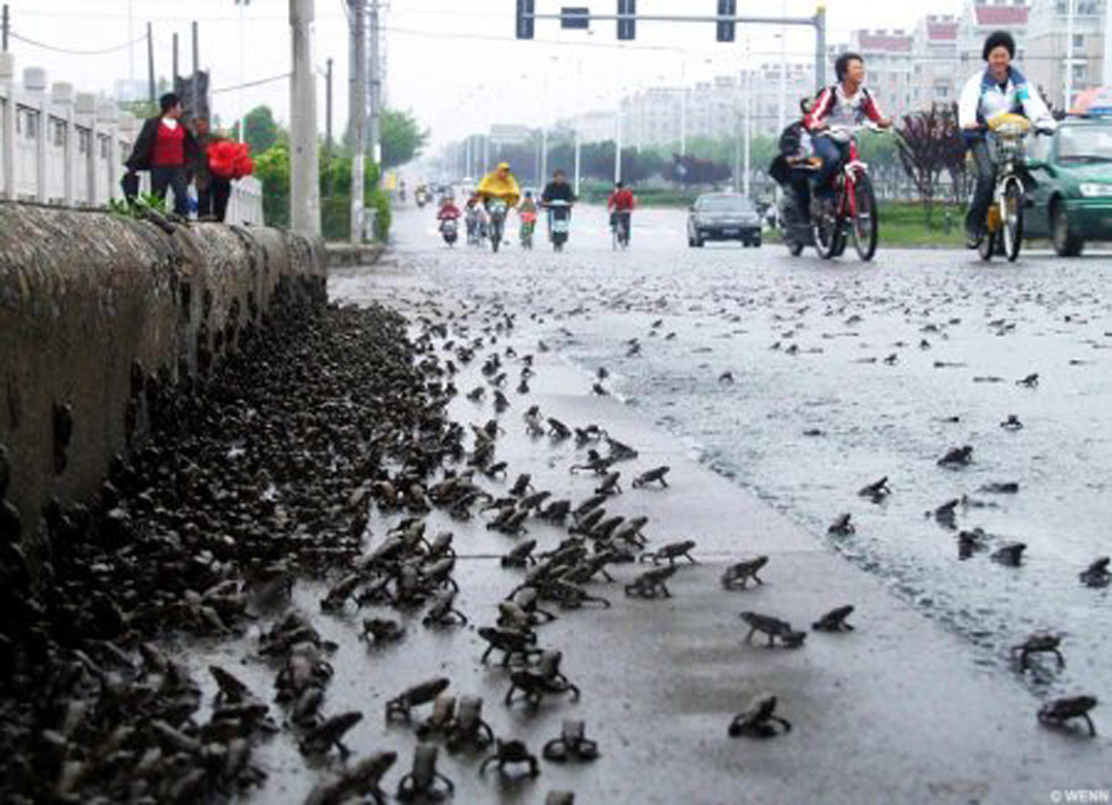 意大利拉奎拉的蟾蜍並不是在地震發生前動物行為出現異常的第一個例子。歷史上曾多次出現這種現象的報告。地震發生前,一些爬行動物、兩棲動物和魚類的行為都出現異常。在1975年的中國海城,很多人發現蛇鑽出巢穴,一個月後,這座城市遭受大地震襲擊。這是一個特別奇怪的現象,因為當時正值冬季,蛇正在冬眠。蛇洞外的溫度低於零度,冒險離開蛇洞對這些冷血動物來說無疑是一種自殺行為。