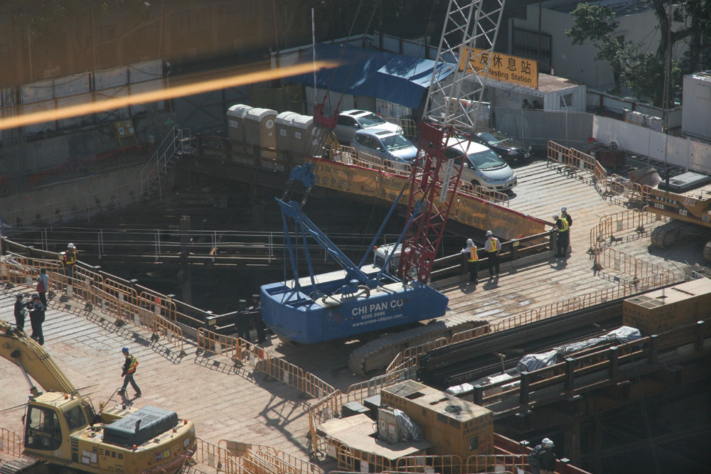 現場為東院道二號近棉花路聖保祿醫院重建地盤,目前正進行地基及地庫工程,地面搭有可供重型車輛及吊機行走的巨型工作台。肇事為一輛重型吊機,配備履帶移動,裝設約十五米高吊臂,機身可作多角度旋轉,配合吊運時調校方向。事發時,工人正在吊重機旁負責協助司機睇位,豈料被轉動的吊機夾在機身與鐵欄間釀成慘劇。