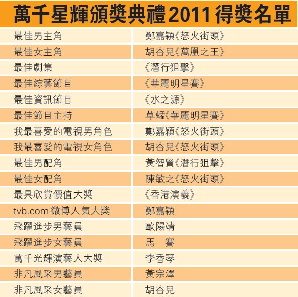 萬千星輝頒獎典禮2011得獎名單