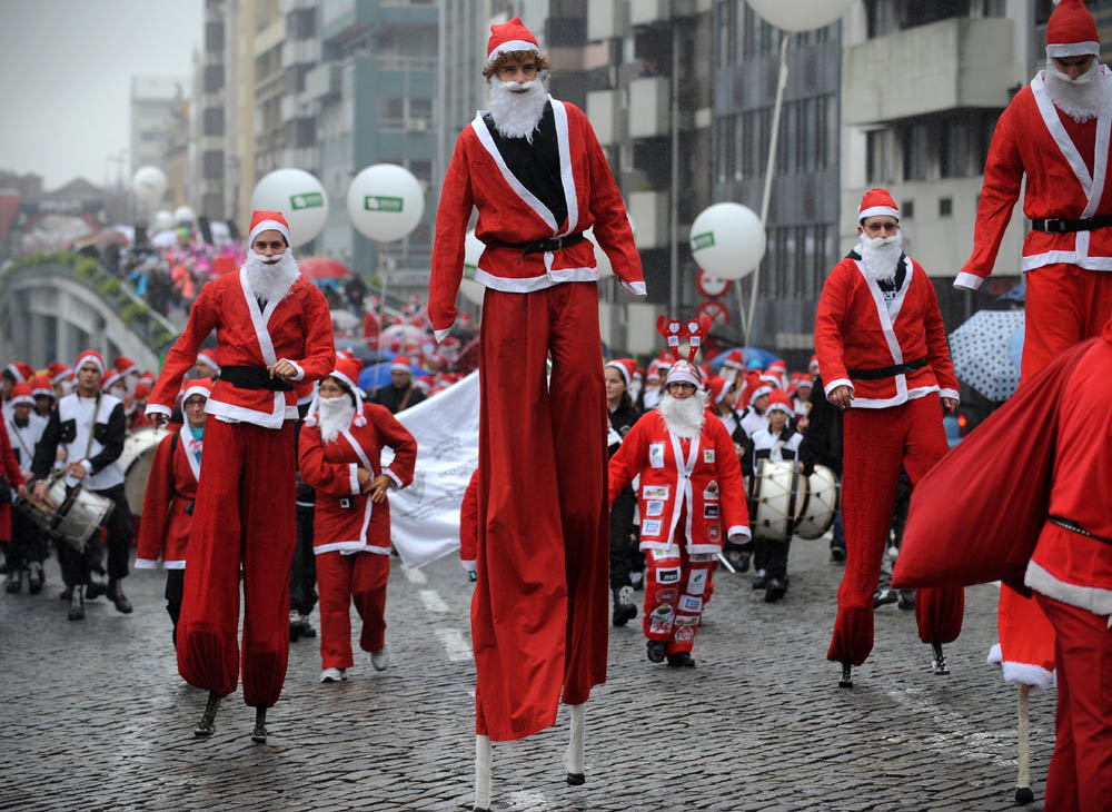大遊行當天下午2時半開始。儘管波爾圖下着小雨、天氣寒冷,但「聖誕老人」們熱情不減,同樣的紅白相間的衣帽,同樣的歡喜笑容,他們沿街而行、載歌載舞。