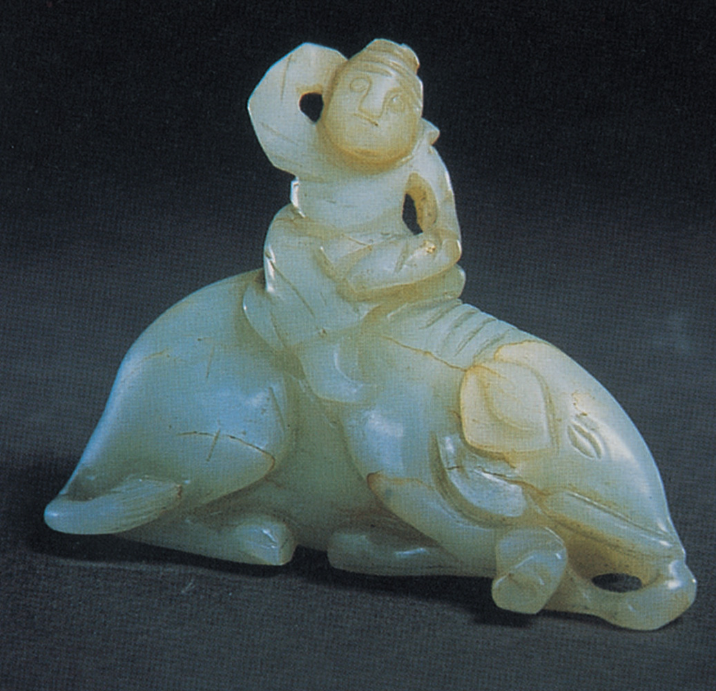 例如附圖乃博物院珍藏的唐玉「騎象伎樂人」,屬典型唐代玉雕風格;紋飾異於漢代以前,乃以那時石刻、泥塑與唐三彩的手法表現人和動物,重立體性,粗獷有氣勢,強調「力」,雕塑感特強;與殷商前的平面性大異其趣。