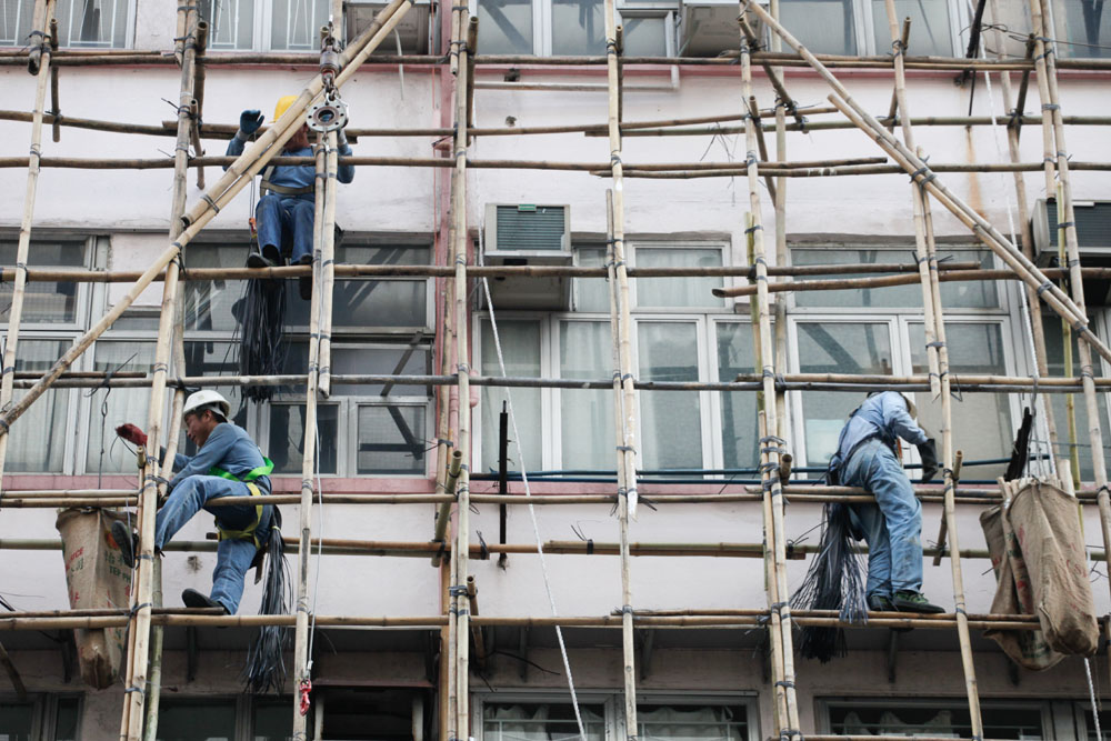 圖:全港近六十間有勞保業務的保險公司,逾六成拒承接勞保,搭棚工種情況最嚴峻 /本報記者林雨燊攝