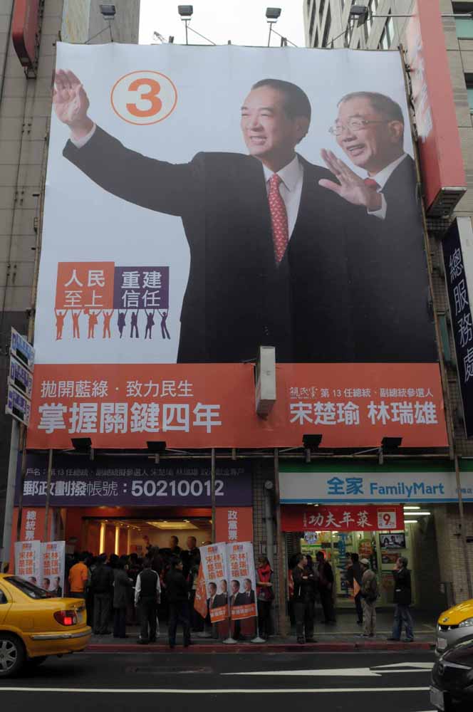 圖:親民黨「總統候選人」宋楚瑜全台競選總服務處15日在台北成立,圖為位於衡陽路上的總服務處/中央社