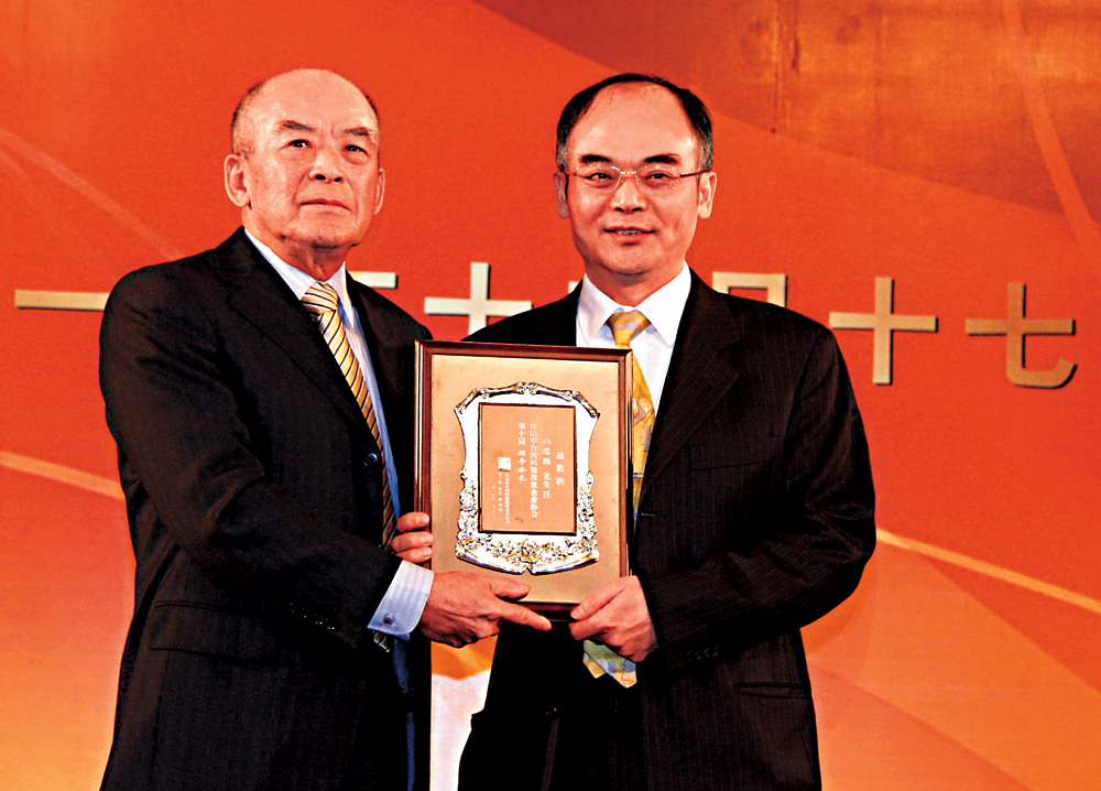 圖:昆山台協第九屆會長孫德聰(右)與第十屆會長李寬信完成交接\賀鵬飛攝