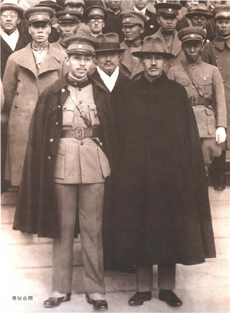圖:蔣介石(前右)和張學良1933年視察西北軍\資料圖片