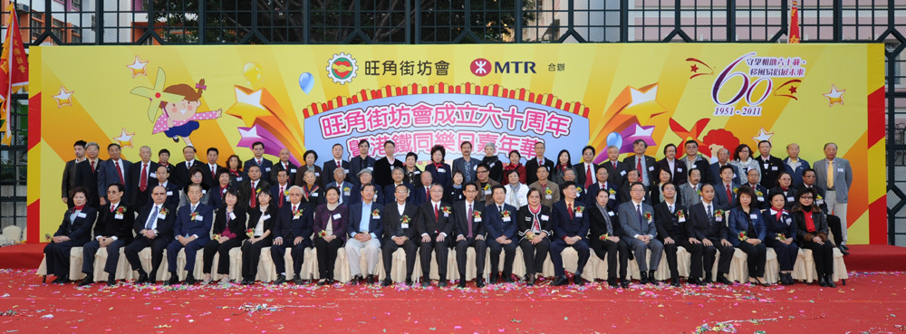 【本報訊】日前,旺角街坊會成立60周年暨港鐵同樂日嘉年華在大角咀晏架街球場舉行。主禮嘉賓有立法會主席曾鈺成、中聯辦九龍工作部副部長容福華、廣州市海珠區委統戰部黃翔、全國人大代表高寶齡、社福署九龍城及油尖旺區署理福利專員關淑儀、旺角警區副指揮官曾艷霜、廉政公署西九龍首席主任梅綺如、油尖旺區撲滅罪行委員會主席吳萬強、油尖旺健康城市執行委員會主席葉華、康文署油尖旺區經理蘇定律、九龍總商會副理事長劉建華、國際聯密佛教慈航會總監陳果齊、港九各區街坊會協進會李豐年、港鐵公司總經理羅普慶等,他們共同主持了剪綵與鳴炮儀式。