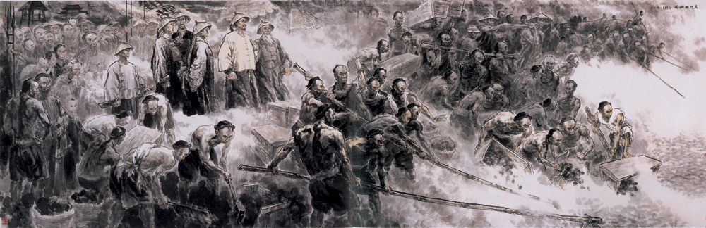 圖:《虎門銷煙圖》李延聲\中國畫\263cm×785cm\2009年