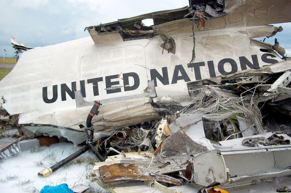 圖:在剛果(金)首都金沙薩墜毀的聯合國飛機殘骸\法新社