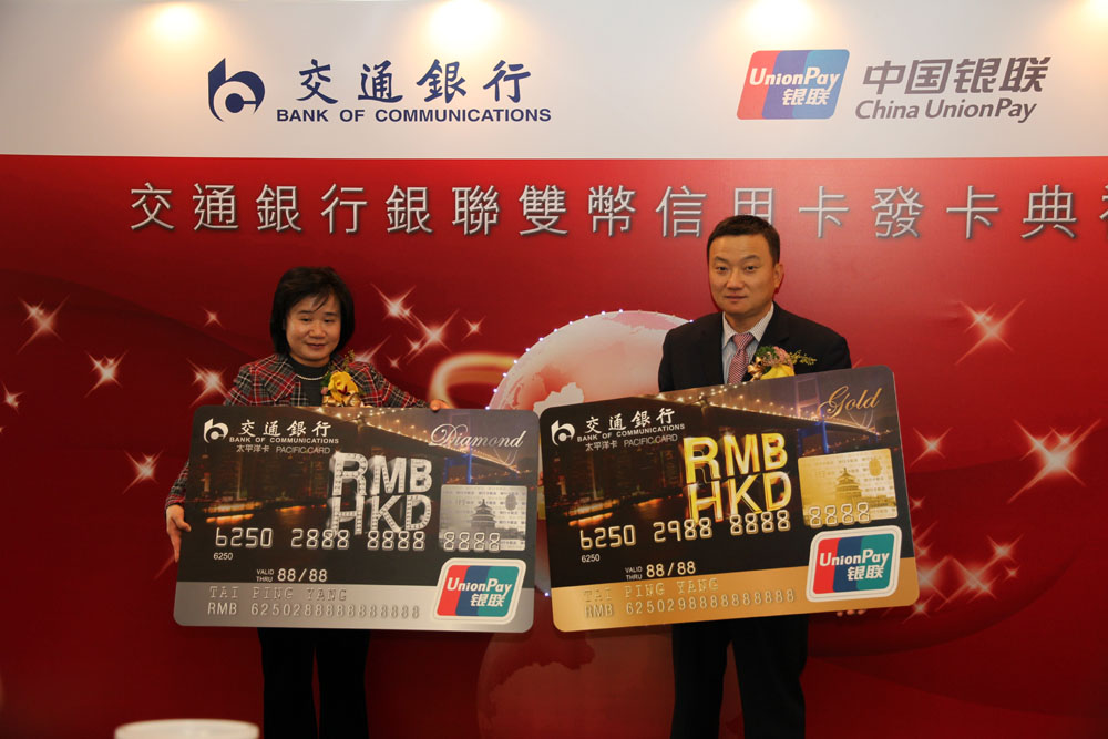 交銀香港宣布夥拍銀聯推出雙幣信用卡,交銀香港副總經理陳霞芳表示,目標推出後首年發卡量達2萬張。她又指,本港與內地客戶跨境消費需要強勁,無論是內地銀聯卡在港消費,或本港持卡人在內地簽帳,按年大幅增長數倍,故相信雙幣卡具有龐大的需求。