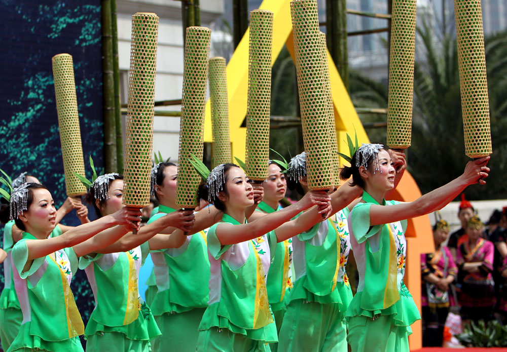 浙江安吉縣9日在上海音樂廳舉辦以「黃埔江源·美麗鄉村」為主題的旅遊推介活動。圖為演員們以原汁原味的民俗風情表演向觀眾展示了一幅現代中國美麗鄉村安居樂業的畫面。