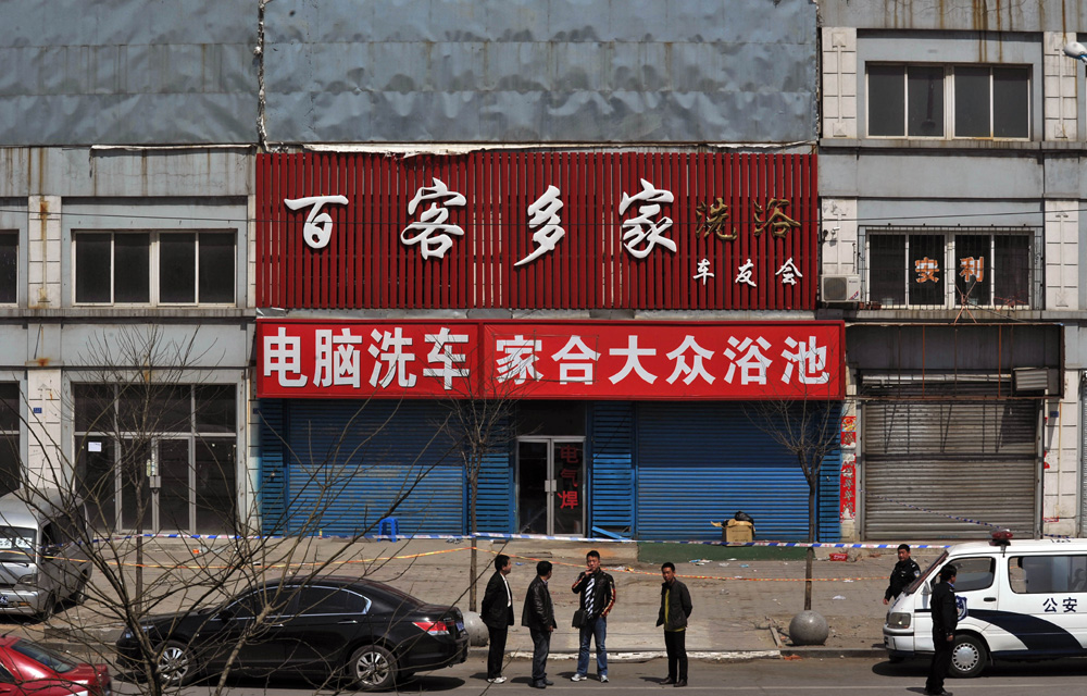 命案發生在鞍山千山區寧遠鎮二台子新村一家大眾浴池。犯罪嫌疑人為周宇新,男,33歲,是這家浴池和洗車房的經營者。警方判斷,周宇新於13日晚至14日晨,將自己的妻子、兒子、父親、浴池1名女服務員、浴池所在房屋的房東一家,以及洗車店裡的3名洗車工共計10人全部殺死。由於案發地位置較偏,所以直到14日中午才被發現。公安機關對現場實施全面封鎖,全部由武警把守。