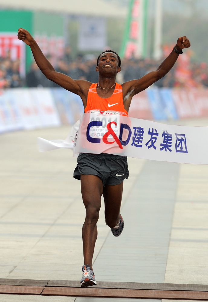 【本報記者鄭名車、實習記者柯錦煌廈門二日電】今日上午8時,2010年建發廈門國際馬拉松賽在廈門會展中心鳴槍開賽。在備受關注的男子馬拉松全程組角逐裡,來自埃塞俄比亞的運動員費伊薩•利賴薩奪冠,成績為2小時08分47秒,打破了廈門國際馬拉松賽賽會紀錄。女子組全程方面,同樣是來自埃塞俄比亞的選手賽義德•阿薩德獲得桂冠,成績為2小時28秒52秒。這是廈門馬拉松歷史上中國選手首次無緣女子組冠軍。