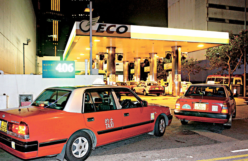 圖:很多的士及小巴昨天都轉往中石化以外的油站加氣,令這些加油站大排長龍(本報攝)