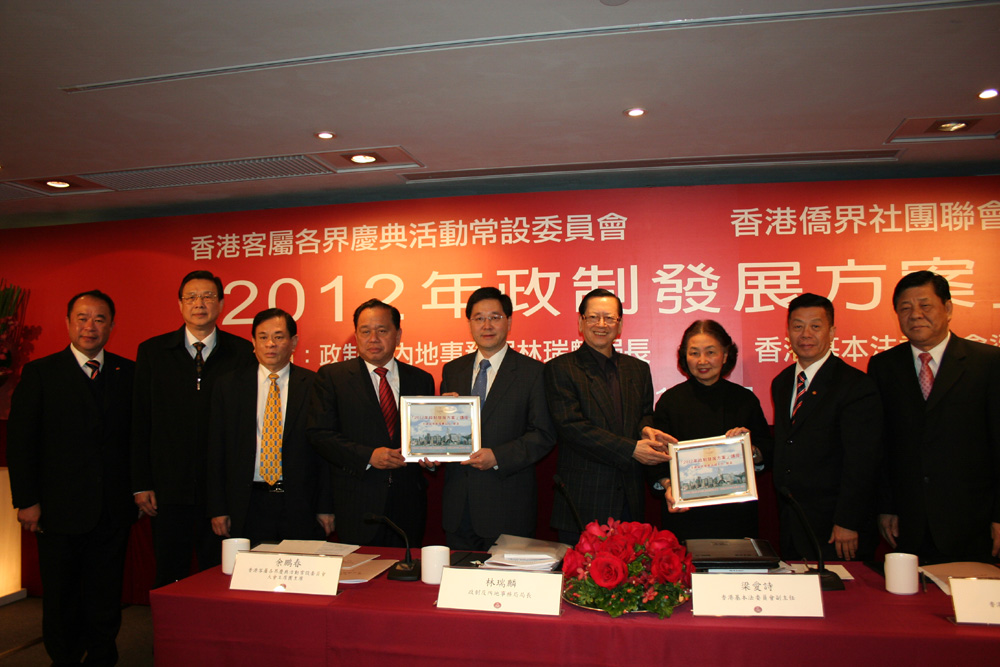 □香港客屬各界慶典活動常設委員會及香港僑界社團聯會日前於灣仔萬麗海景酒店舉辦「2012年政制改革發展方案」講座,邀請到香港政制及內地事務局局長林瑞麟和香港基本法委員會副主任梁愛詩作演講。出席活動的有包括全國僑聯副主席陳有慶,全國政協常委、港僑聯會長余國春及香港客屬各界慶典活動常設委員會大會主席團主席余鵬春等一百五十餘人。林瑞麟和梁愛詩均在演講中呼籲大家支持政改方案,共同促進香港政制向前發展。\本報記者 黃閩