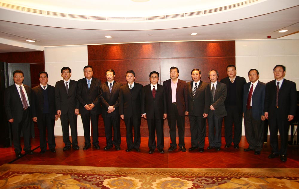 圖:浙江省委書記、省人大常委會主任趙洪祝(中)一行昨天與香港傳媒高層見面並合照留念。左六為中聯辦宣傳文體部部長郝鐵川,左五為浙江省政府副省長龔正,右五為浙江省委常委、省委秘書長李強,左一為浙江省政協副主席、省工商聯主席徐冠巨(本報攝)
