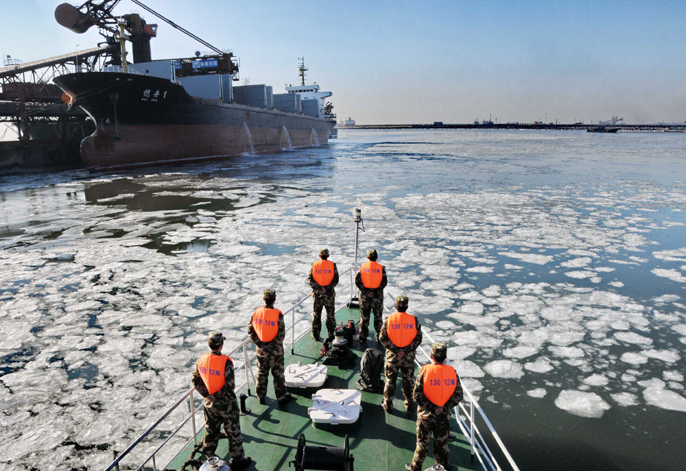 截至13日,擔任天津港港區主要破冰任務的天津港輪駁公司共有10艘拖輪參與破冰,出動船舶巡視冰情312艘次,累計冰情巡視時間1248小時,出動破冰作業船舶152艘次,累計破冰作業時間606小時,破冰作業所幫助貨船達1950艘次,最大限度地保證了進出港船舶的正常運行。