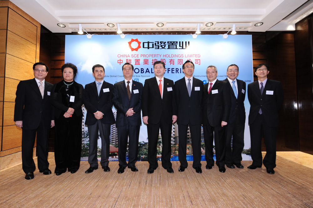 圖:中駿昨舉行投資者推介會,左起:陳永隆、劉央、丁世忠、林樹哲、黃朝陽、田北俊、李子良、馮家彬、葉德銓