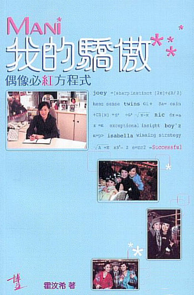 對偶像最緊張的人,不是「粉絲」,反而是經理人。《我的驕傲——偶像必紅方程式》(右圖)作者霍汶希,16歲時已經是炙手可熱的模特兒,後來加入楊受成的公司,由保姆做起,慢慢成為今天備受認同的著名經理人。她培育藝人,首重品格。當容祖兒勇奪女歌手金獎,上台的藝人都說了聲:「多謝Mani!」她說:「見到他們在台上邊說邊哭的樣子,有些還幾乎說不出話來,這份誠意已令台下的我感動非常,我想起了曾經與她們一同走過的起起跌跌,那時候百感交集。」