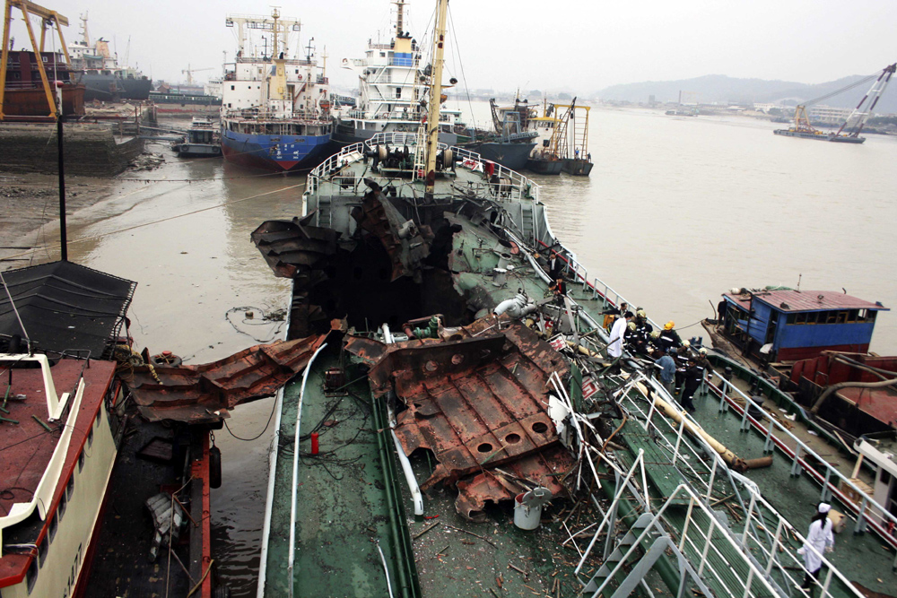 圖:一艘廣東油輪2日在福建維修時發生爆炸造成1人死亡(新華社)