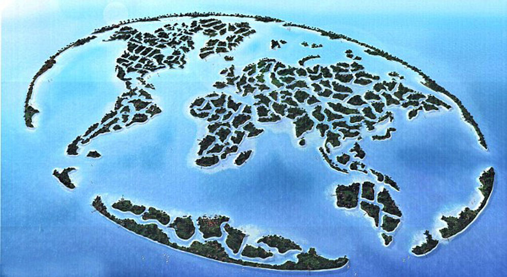 然而,一名美國太空人一月十三日在國際太空站拍攝的照片顯示,「世界島」並非和原計劃中一樣完美,因為這幅「世界地圖」正日益「縮水」,出現下沉的趨勢。當時該太空人使用的是焦距為四百毫米的尼康D2Xs相機,價值三千英鎊。為了突出景物,他增強了照片的對比度。