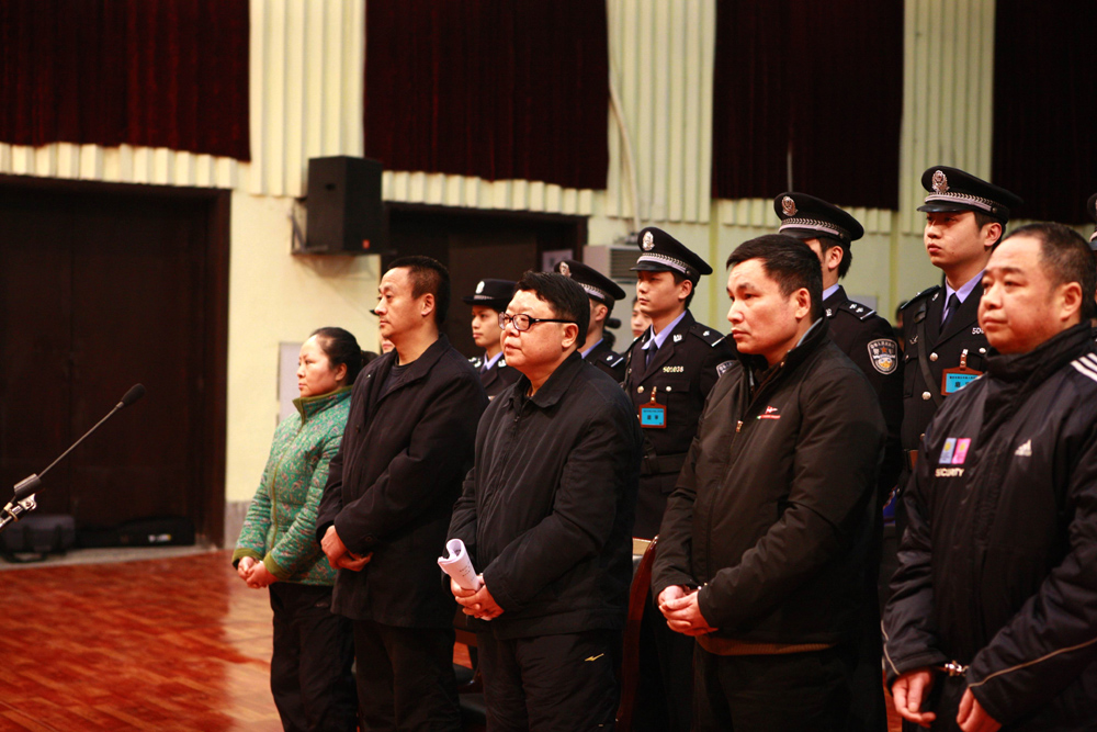 圖:文強(前排中)及其妻子周曉亞等在庭審現場 (重慶法院 供圖)