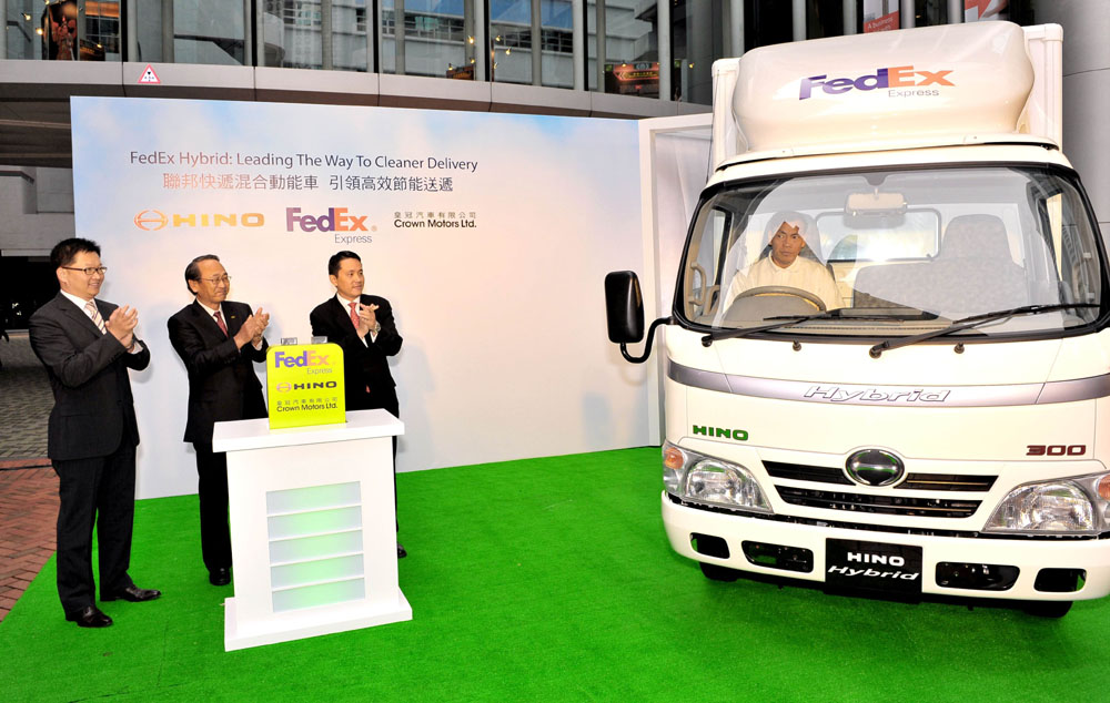 兩輛柴油電動混合動力貨車是由日野汽車生產,本月中開始在尖沙咀、佐敦及旺角地區投入服務,車身將印有「FedEx EarthSmart」標誌。每輛柴油電動混合動力貨車燃料效能達至每公升11.20公里,於同類型車輛中表現最佳。相比起聯邦快遞現時採用的柴油車輛,有助減低碳排放30%,承載力亦因增加三成。