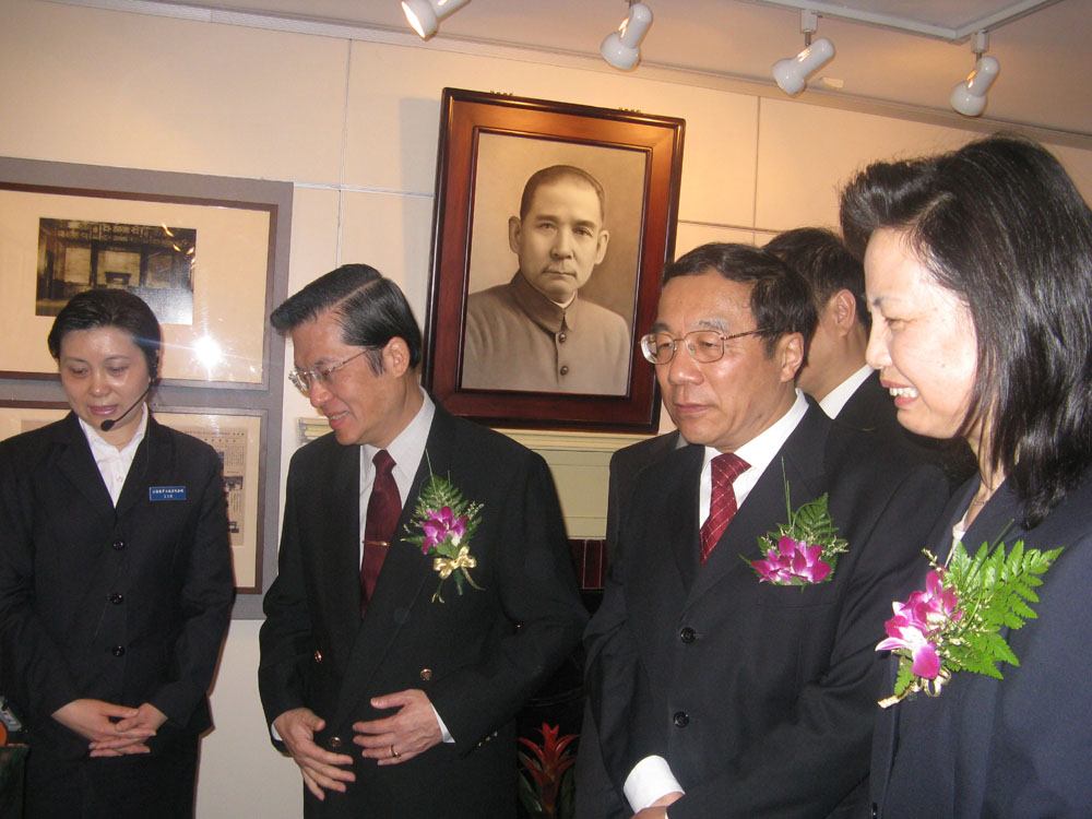 圖:國民黨副秘書長張榮恭(右三)、中共上海市委常委楊曉渡(右二)等人於去年六月在參觀紀念孫中山先生文獻展(資料圖片)