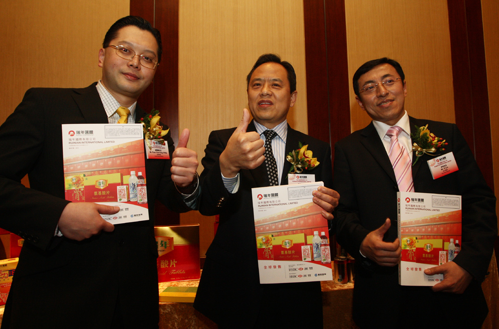 圖:左起:瑞年財務總監潘翼鵬、主席兼行政總裁王福才及執行董事伊林