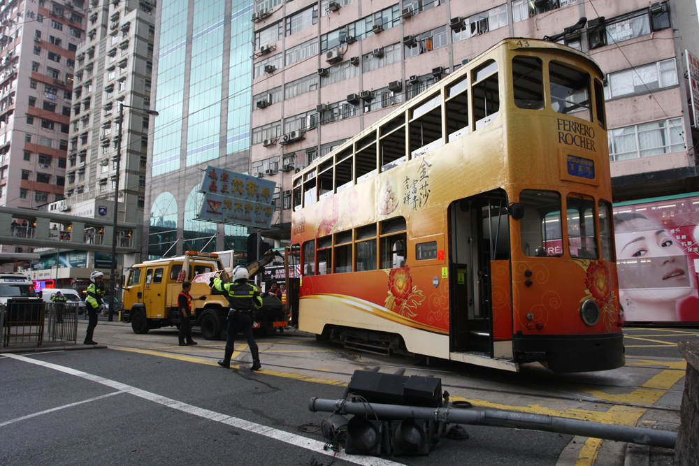 銅鑼灣高士威道昨天下午3時許發生交通意外,一輛巴士與電車發生相撞,兩車共有11名乘客受輕傷,傷者分別送律敦治及東區醫院治理。