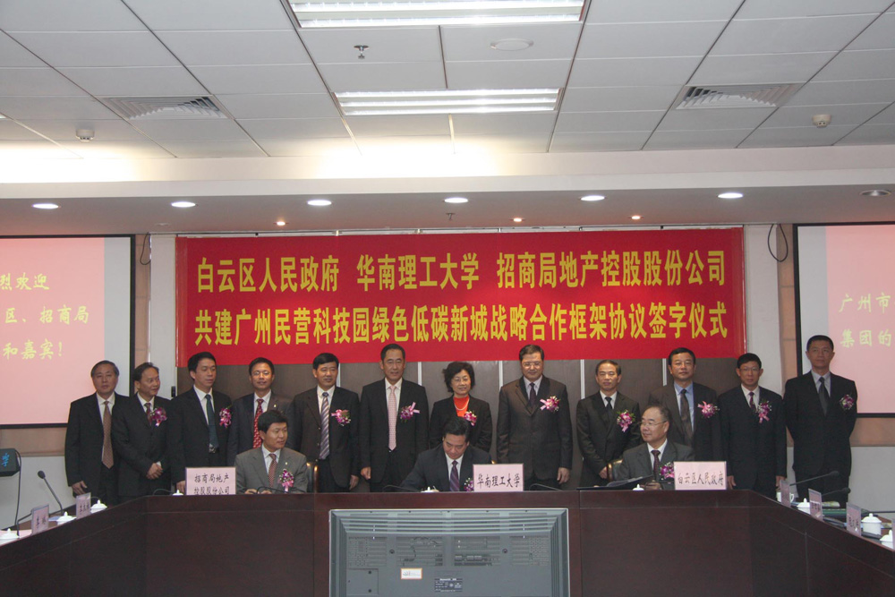 由華南理工大學、白雲區人民政府、招商局集團三方共同合作共建的首個低碳新城示範區,充分整合三方優勢資源,由白雲區政府提供土地、政策和產業基礎資源,華南理工大學發揮學科、科技和人才方面的優勢,招商局集團提供資金、開發建設及營運管理經驗,力求打造具有嶺南文化特色、融合綠色低碳產業、低碳居住和商貿服務於一體的低碳新城示範區。
